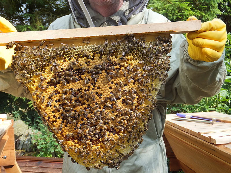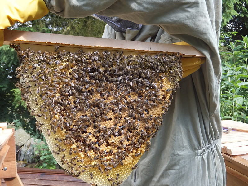 We don't farm bees. We choose to provide suitable places for honeybees to live without expecting a harvest of honey and beeswax in return.